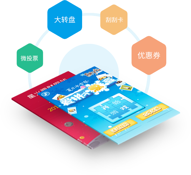 通过优惠券推广,幸运大转盘、刮刮卡、微投票等功能模块,发起营销活动,对已有客户进行在营销,通过不断更新补充主题,用户可以反复参与,并可带动周边朋友一起分享,从而形成极强的口碑营销效果。